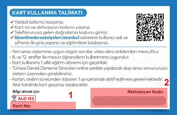 Üye kartınızda kazılı alanda bulunan aktivasyon kodunu girin